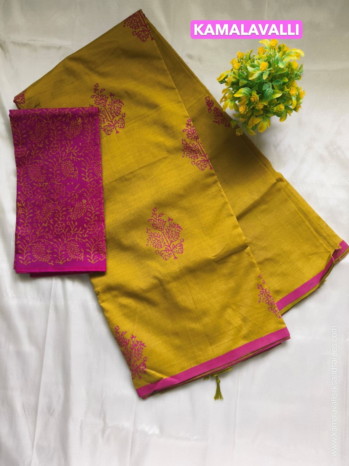 South Cotton Sarees consists of beautiful block prints all over the saree....